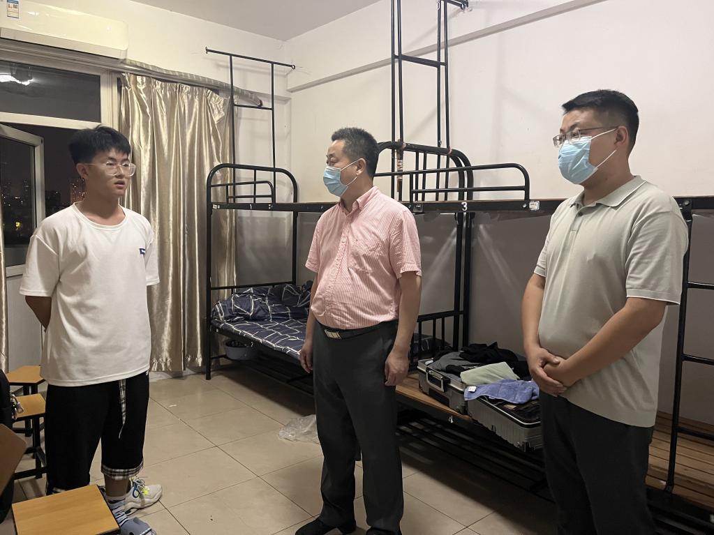 我院高度重视新生入学工作,学院党政领导于傍晚在学工老师的陪同下前往2022级新生宿舍进行实地走访看望,深入了解新生住宿情况,关切询问新生入学感受,对于学生提出的各类问题给予详细的解答,同时叮嘱新生注意疫情防护和各类生活安全。新生表示学院领导的真情关怀让大家感受到家的温暖,对于新学期、新身份自身要尽快转变角色、融入环境、适应大学节奏。