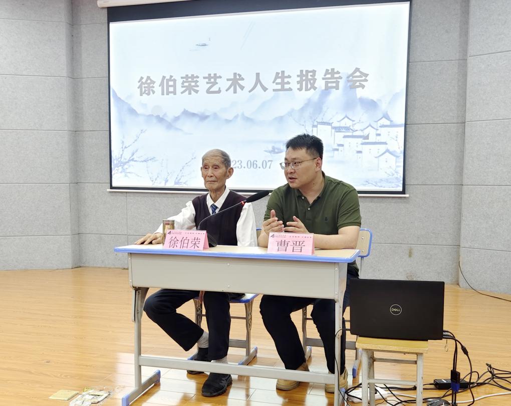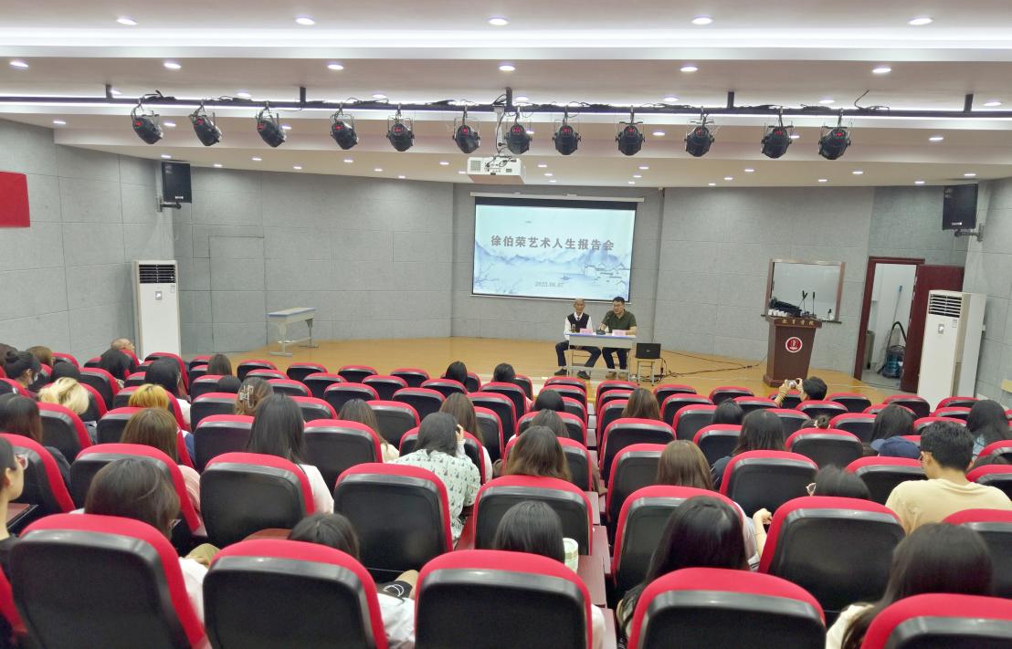 2023年6月7日下午14:30,徐伯荣先生艺术人生报告会在校师范生功能音乐厅举行。艺术设计学院副院长曹晋主持报告会,艺术设计学院150余名师生聆听报告。