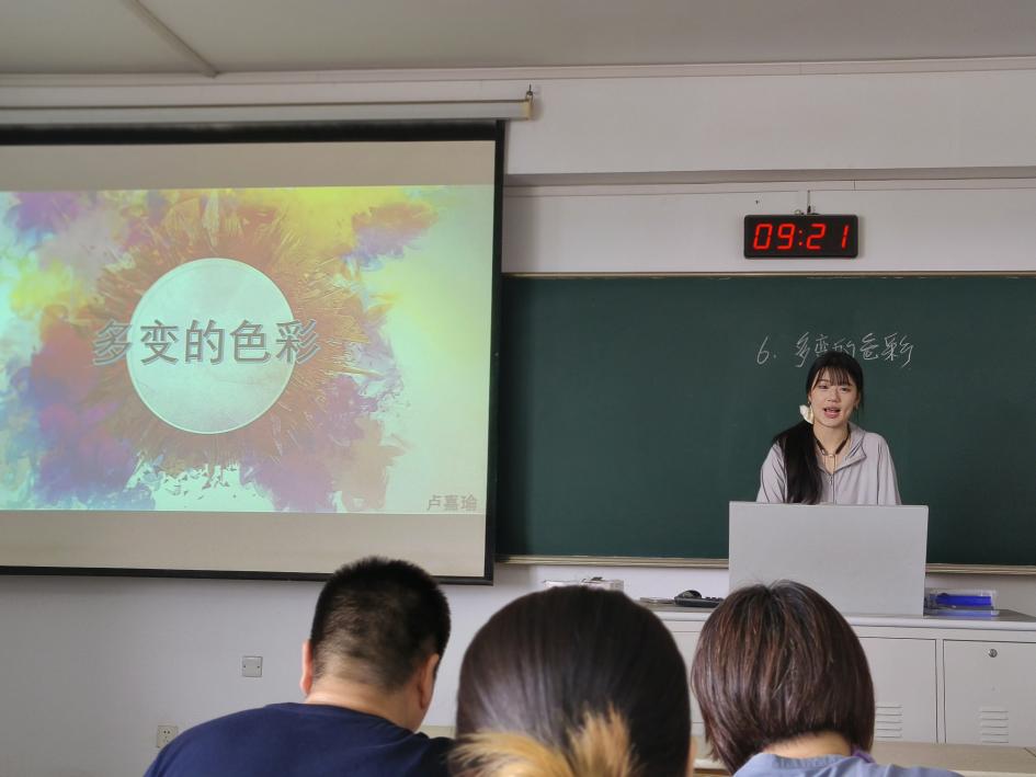 卢嘉瑜《多变的色彩》主要带领学生感受色彩之美,通过本课学习,学生能够认识什么是色彩三要素,以及掌握如何使用颜料来表现色彩的情感。教学过程中注重激发学生的能动性,真正做到让学生成为课堂的主人。讲课中体现了美术教育方向学生的理论素养、驾驭教材能力和教学设计的能力。