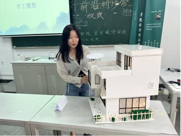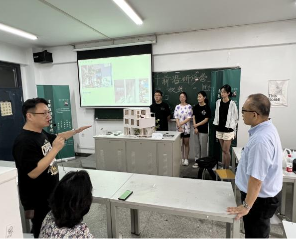 结营仪式的上半部分为设计实践的结业汇报环节。各组同学均以手工实体模型、手绘、3D数字模型及图纸结合的形式,依次向到场老师们展现了一周以来的设计成果,并讲述了参营心得体会,教师们也对该成果逐一进行了点评。