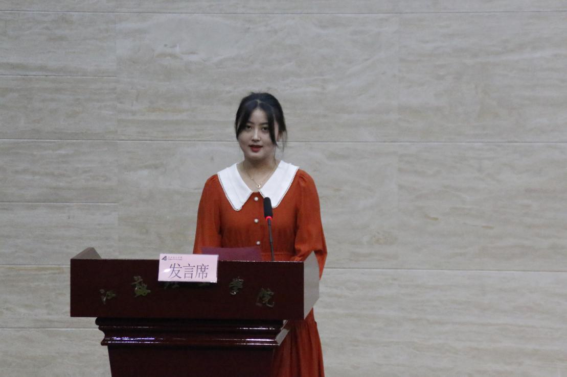 我院数字媒体艺术的专业教师陈晓月代表新生班主任发言,她对307名学子进入新的阶段学习表示欢迎。她通过自身的执教经历勉励广大新生学会学习,敢于创新,知行合一,做一名德智体美劳全方位发展的复合型人才,青春无悔度过美好的大学时光。