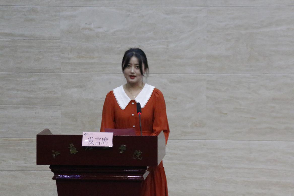 朱凤娟讲述了自身来到江理工后的在校经历。她讲到在当学生干部时,不断历练自身工作能力;在做学生助导时,不断磨练自身的管理能力;在参加专业竞赛时,不断提升自身的专业能力。她强调学无止境,新青年就要不断适应新的环境和新的变化,从而学会学习。最后,朱凤娟勉励在场的2023级新生学子们,学习一场漫长修行之旅,大家都要抱着谦逊的态度学习。