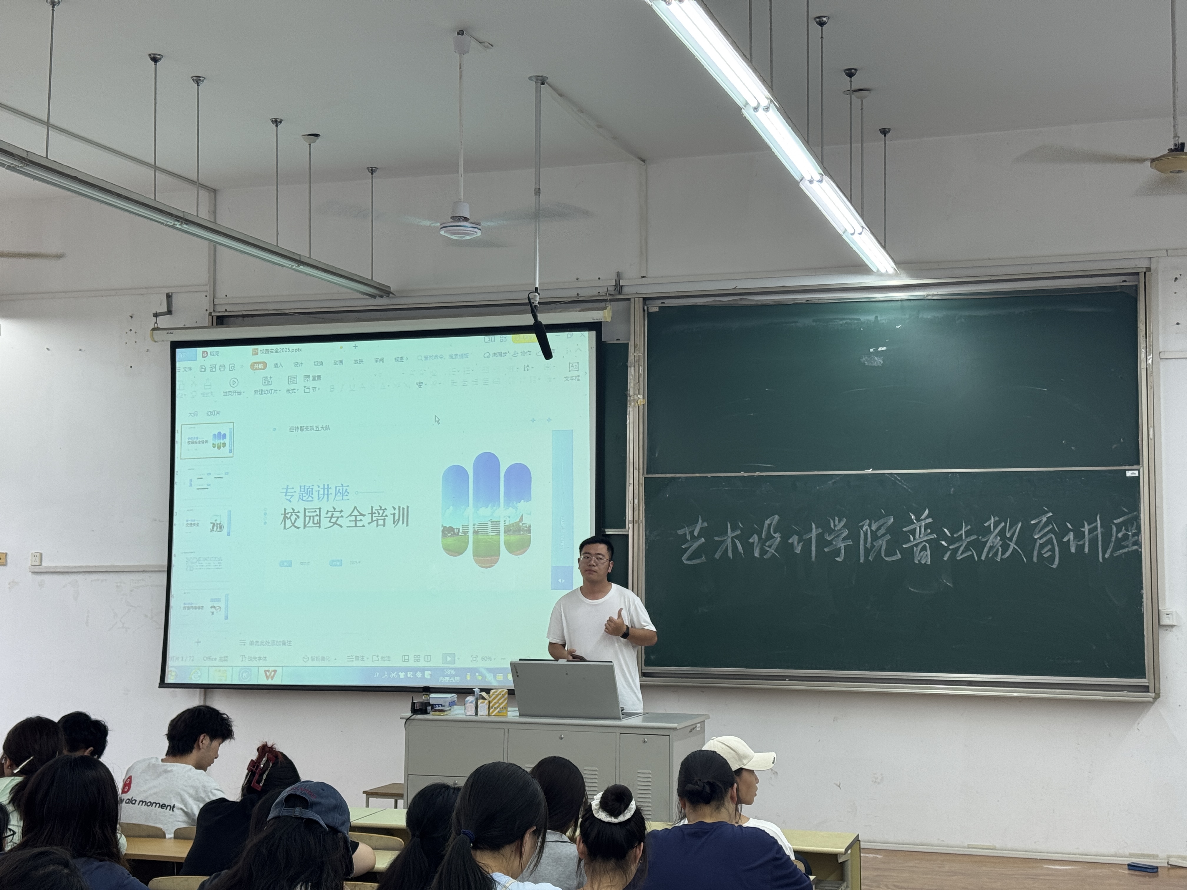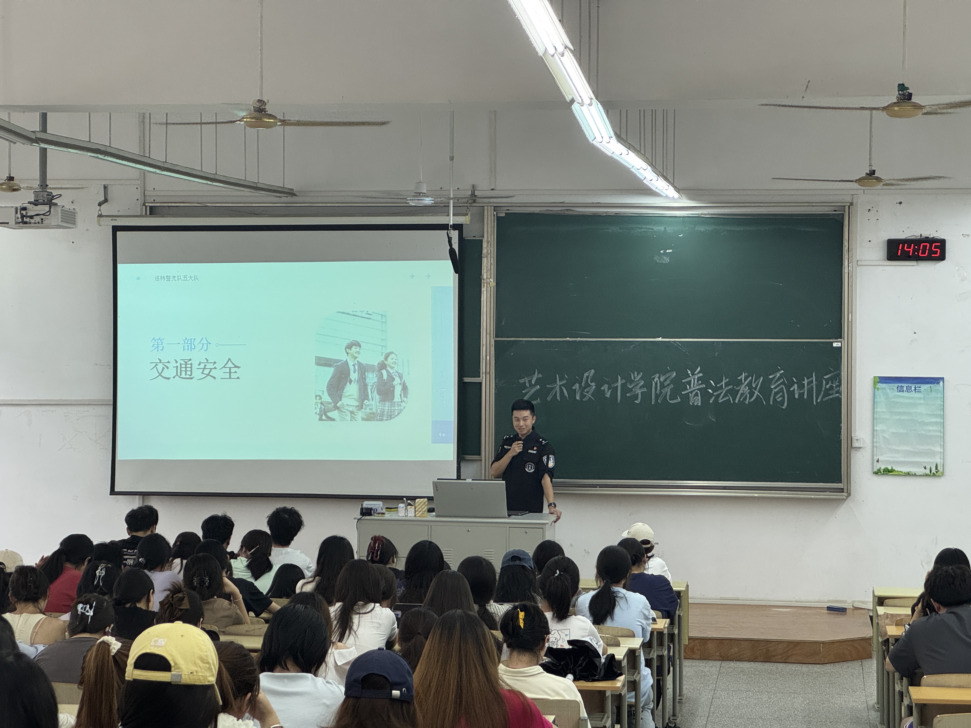 为切实增强我院学生的法治意识与安全防范能力,帮助学生在日常学习生活中规避风险、维护自身权益,2025 年 9 月 24 日下午,艺术设计学院于博艺楼 103 教室成功举办 “知法于心,守法于行” 校园普法安全专题讲座。本次讲座特别邀请常州市公安局巡特警支队五大队周梦虎警官担任主讲人,我院各年级共计 220 名学生参与,讲座由 25 级辅导员魏赛主持,内容围绕校园安全、网络谣言治理、网络诈骗防范三大核心主题,以 “案例 + 互动 + 趣味” 的形式,为学生带来一堂生动实用的法治教育课。