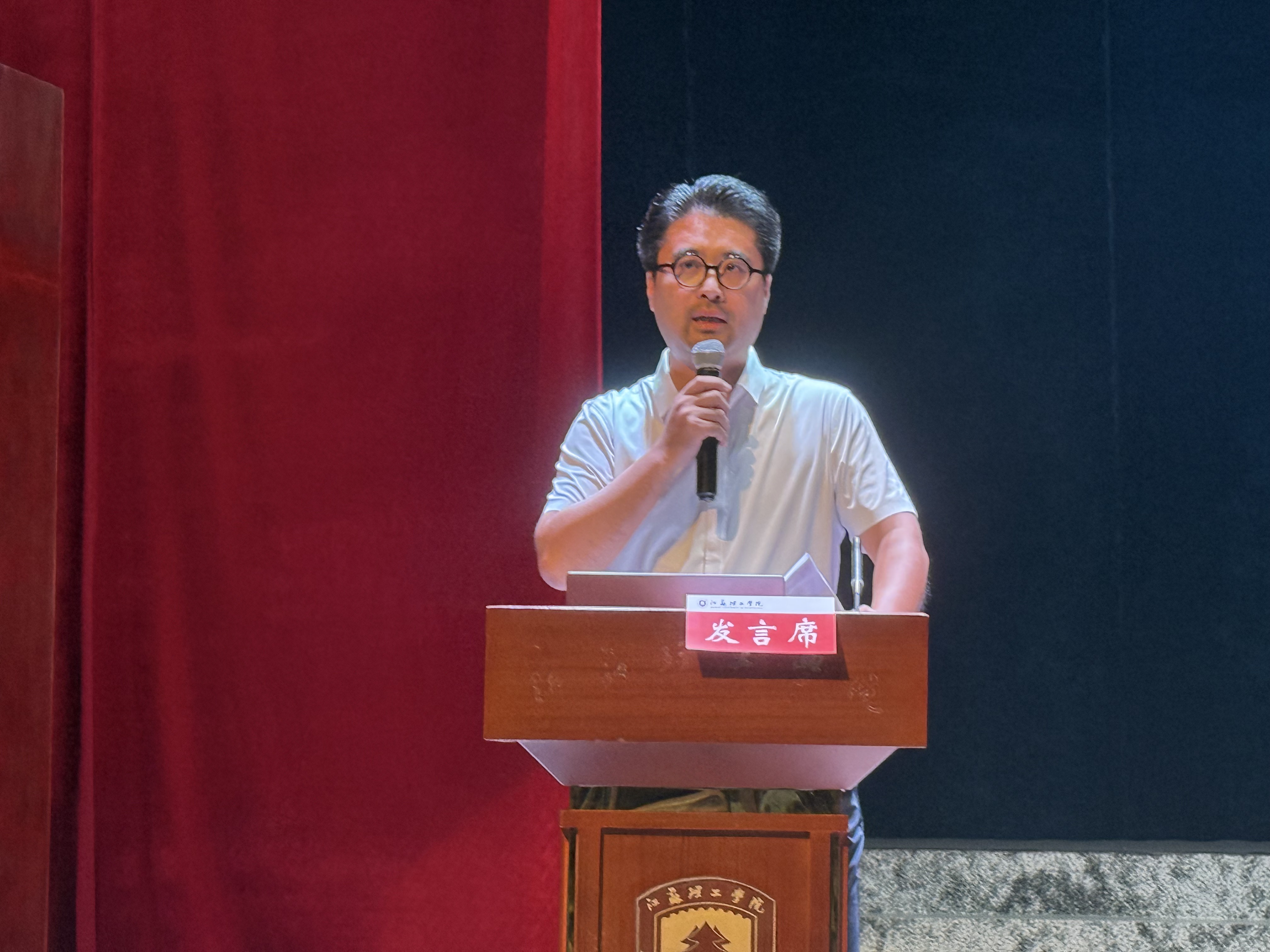 2025级优秀校友张作虎为新生作题为《让艺术人生更有想象力》分享发言。他从为何选择艺术、如何综合审美、如何平衡科技与艺术,三个方面向艺术新生分享了个人的感悟,并希望大家能利用四年提升个人的创造力和解决问题的能力。