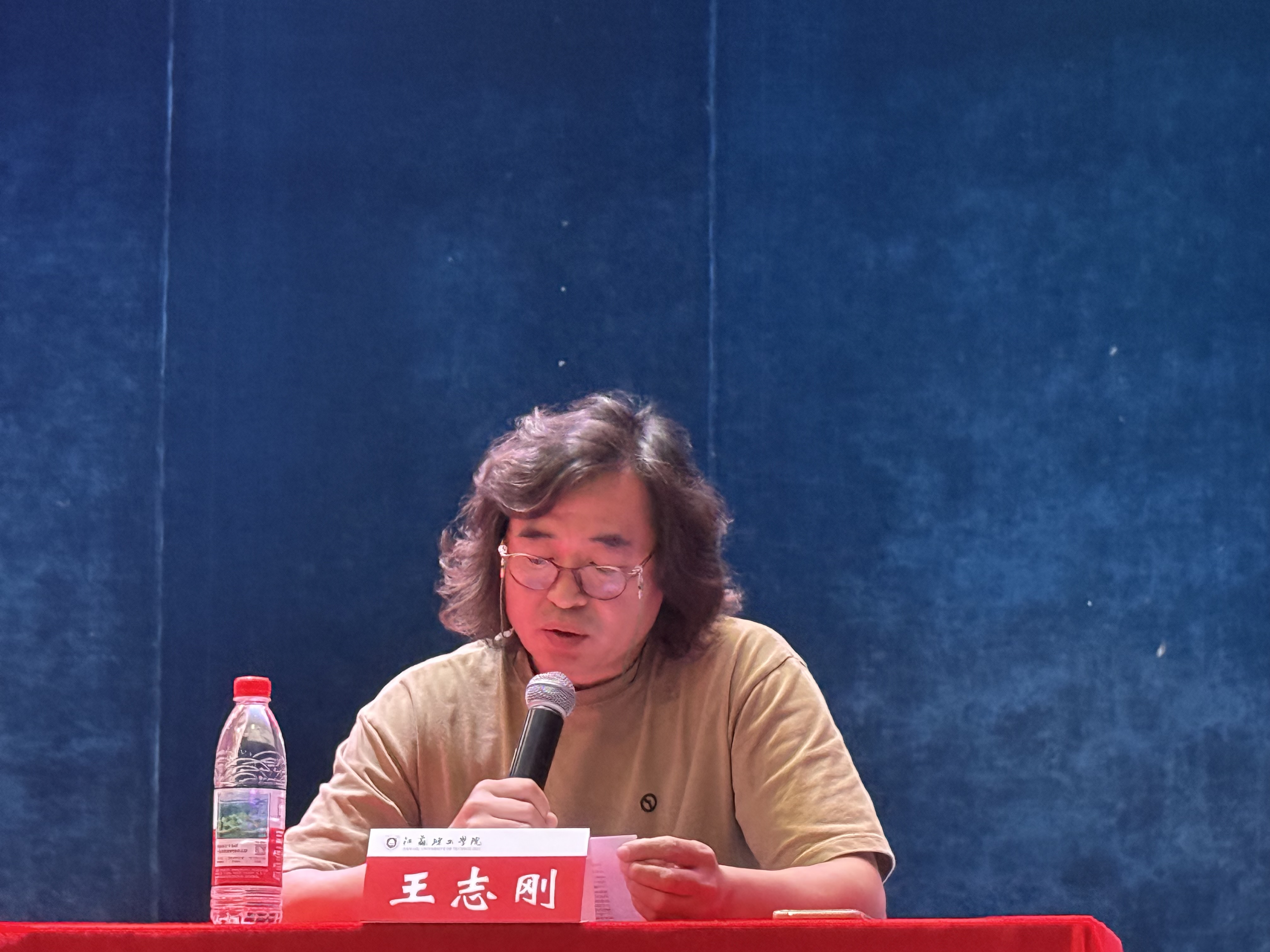 视觉传达系主任、研究生班主任王志刚作为教师代表发言。他指出大学首先是“学”的场所,教育的核心是“学”,而学是自主的、能动的。大学期间,要学会不断地去思考和追问,追寻个人所思,思考如何开启更美好的人生。最后期待新生能成为有高尚道德品格、开阔学术胸襟、深刻人文关怀、丰厚艺术才情的艺术栋梁。