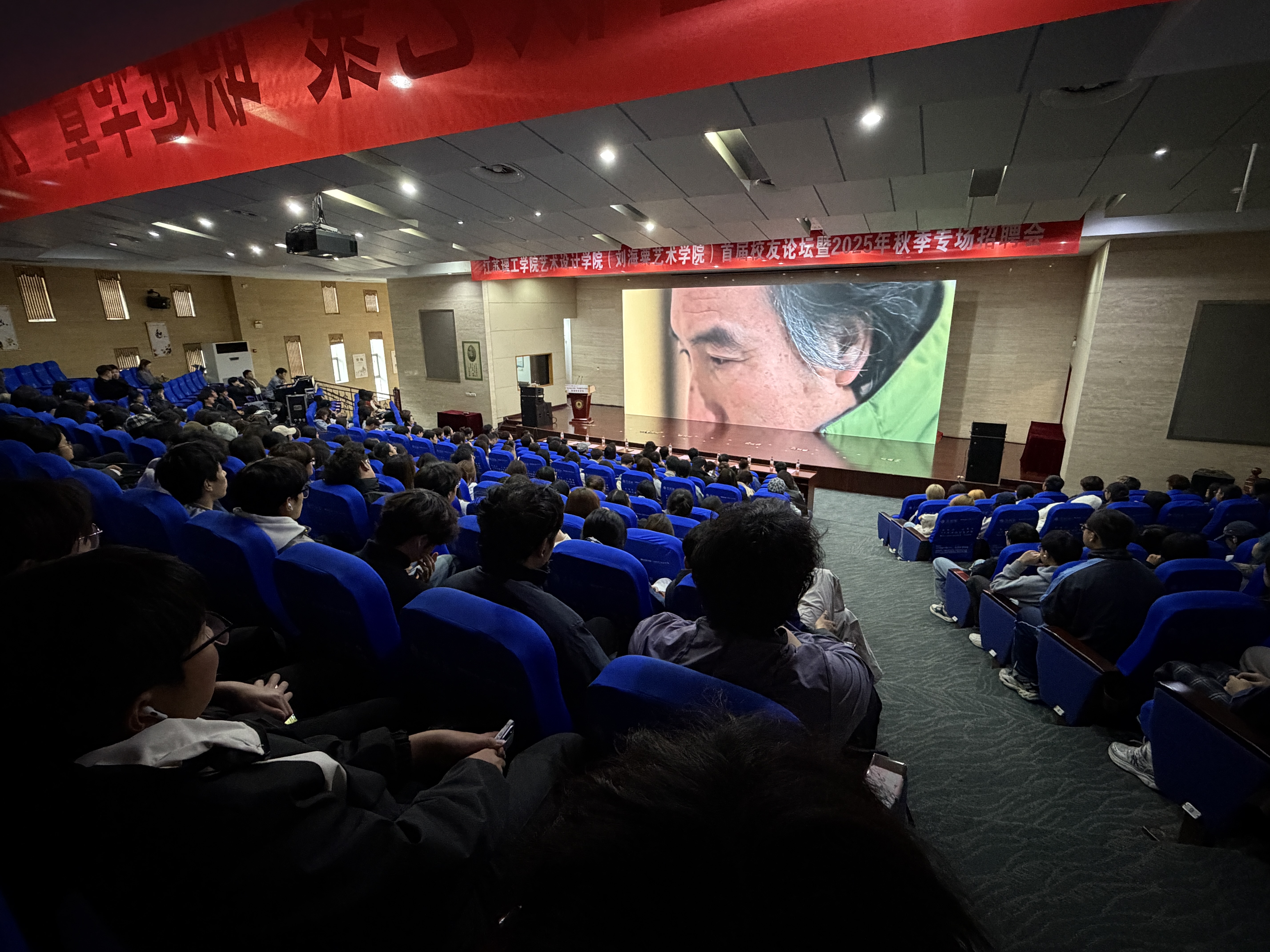 2025年11月12日下午,江苏理工学院艺术设计学院(刘海粟艺术学院)在校园图书馆北报告厅成功举办了首届校友论坛暨秋季招聘会。出席活动的领导和嘉宾有校友办主任、校友总会秘书长张珍、校友会总会副会长石建忠、学院党委副书记兼副院长(主持工作)朱亮亮、学院校友分会会长张作虎、秘书长曾钰、校友会代表、学院发展委员会代表及在校师生代表300余人。活动由学院副院长曹晋主持。
