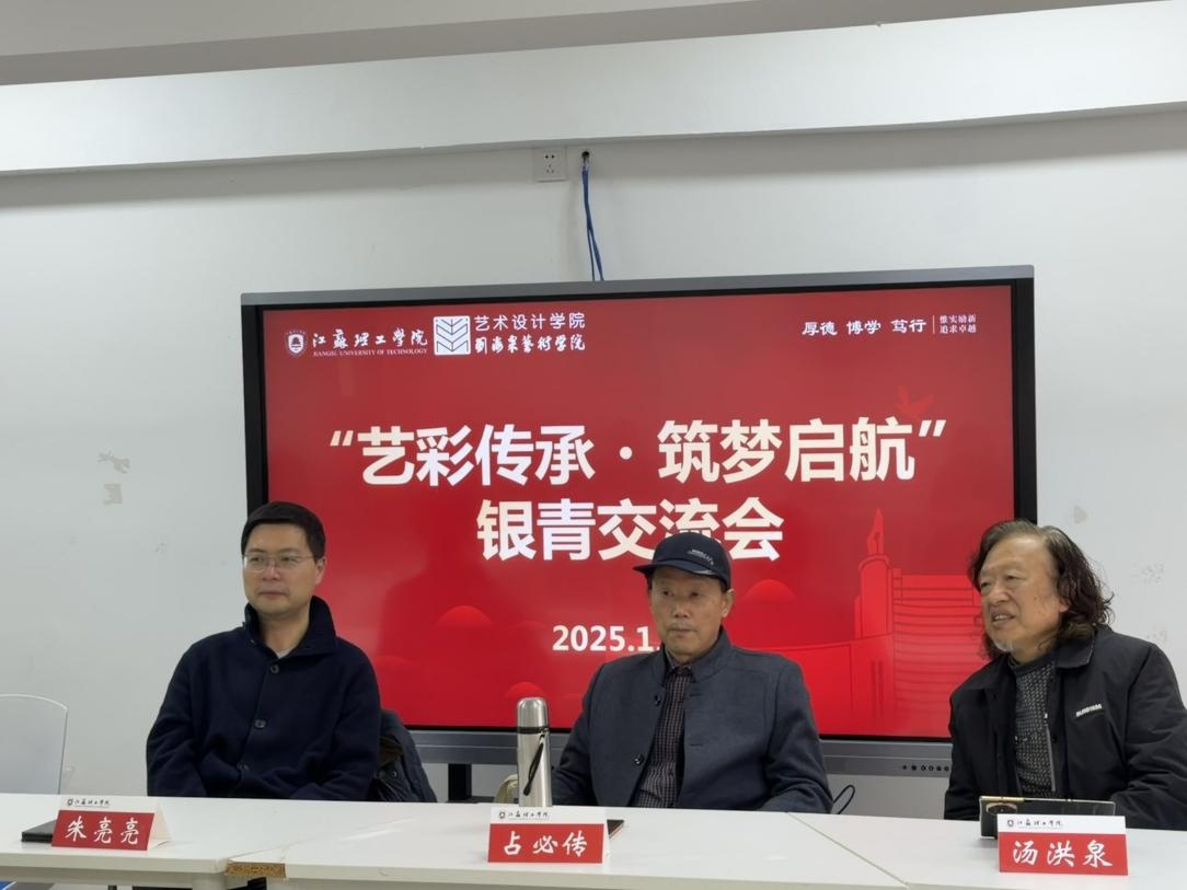 2025年11月20日,艺术设计学院邀请学院关工委委员占必传教授、汤洪泉教授重返校园,在57#212校一站式社区开展“艺彩传承・筑梦启航”银青交流会,学院副院长(主持工作)朱亮亮老师和35名2024级、2025级美术学专业学生参会,学工办主任卞舒云老师主持会议。