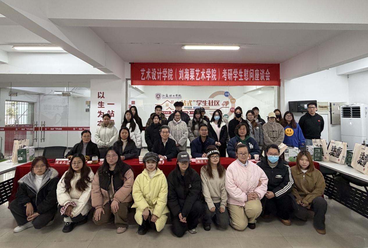 2025年12月4日下午,校党委副书记、校长戴国洪走进一站式学生社区笃行社区,出席艺术设计学院2026届考研学生慰问座谈会,与备战考研的学子亲切交流。艺术设计学院党委副书记、副院长(主持工作)朱亮亮,考研指导教师代表王志刚、段杏元,学院辅导员及2026届考研学生代表参会,座谈会由学院党委副书记、副院长钟蕾主持。