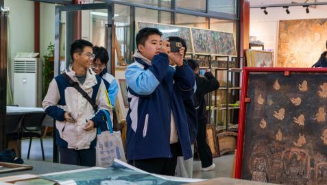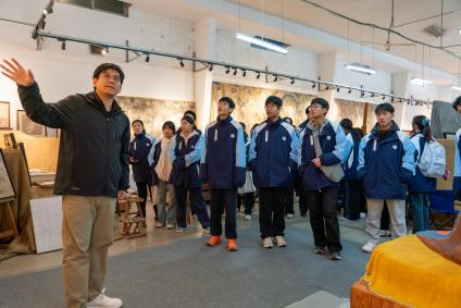 12月6日上午,常州市田家炳高级中学160余名师生走进江苏理工学院,开展了一场别开生面的研学活动。师生们此行的重点之一是探访江苏理工学院艺术设计学院传统壁画研究所,近距离感受中华传统壁画艺术的魅力。