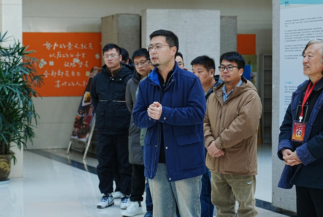 艺术设计学院视觉传达设计系专业负责人高志强教授对展览进行点评。他表示,杨木生老师的个展充分彰显了一名视传专业教师扎实的专业功底、深刻的教学思考,作品既是专业能力的集中展现,更是内心感悟的生动表达。他寄语同学们,要在设计道路上找准自身定位,紧密结合社会实践,创作出更多有温度、有价值的设计作品。